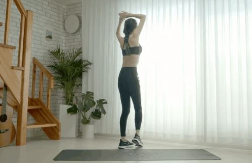 - Lần lượt nâng tay chạm vai, sau đó lại đi bộ ngược lại và vươn người đứng thẳng.