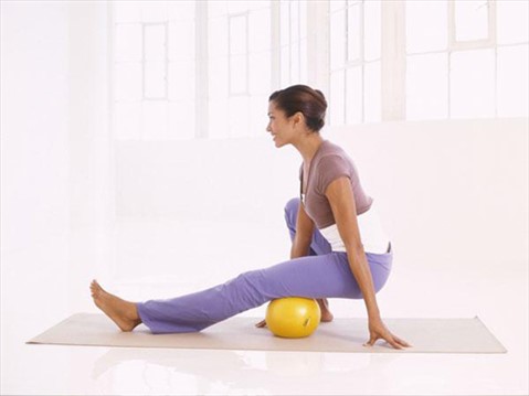Dùng lực của hai tay kéo mông lăn trên bóng về phía đầu gối kết hợp hít một hơi thật đầy. Sau đó dùng lực hai tay đẩy người trở lại tư thế ban đầu, kết hợp thở ra. Khi cảm thấy nóng ở vùng chân trái thì chuyển sang chân phải thực hiện tương tự như trên. Động tác này có tác dụng nới lỏng gân khoeo chân, giảm đau lưng, tăng cường cơ bắp, làm săn chắc đôi chân.