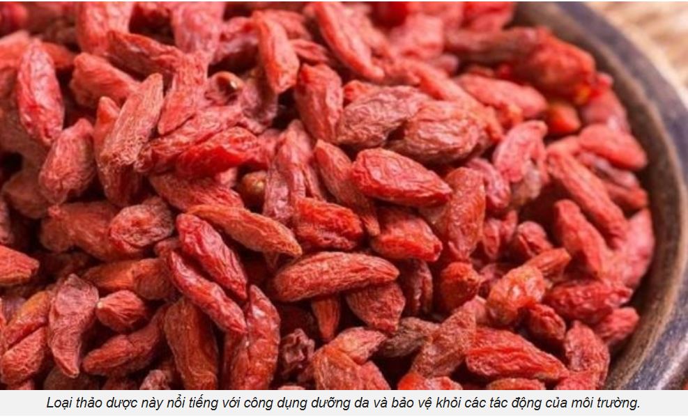 Loại thảo dược này nổi tiếng với công dụng dưỡng da và bảo vệ khỏi các tác động của môi trường. Kỷ tử rất giàu chất chống oxy hóa, đặc biệt là carotenoid như beta-carotene, giúp chống lại stress oxy hóa – nguyên nhân chính gây lão hóa sớm, nếp nhăn và mất độ đàn hồi của da. Ngoài ra, polysaccharides trong kỷ tử hỗ trợ quá trình hydrat hóa, mang lại làn da căng mịn và trẻ trung. Loại thảo mộc này cũng chứa nhiều vitamin C, đóng vai trò quan trọng trong việc thúc đẩy sản xuất collagen – yếu tố cần thiết để duy trì độ săn chắc của làn da, ngăn ngừa chảy xệ. Nhờ đó, kỷ tử không chỉ giúp làm đẹp mà còn bảo vệ da khỏi các tác nhân gây hại từ môi trường.