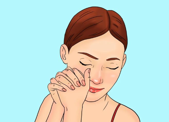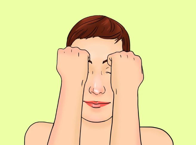 Thư giãn vùng mắt: Trước tiên bạn nhắm mắt lại. Sau đó nắm tay và đưa nắm tay vào vùng mắt sao cho ngón trỏ và ngón giữa áp vào lông mày rồi vuốt nhẹ từ trong ra ngoài, thực hiện 1-2 phút rồi đổi tay với mắt còn lại. Động tác này giúp giảm nếp nhăn quanh mắt hiệu quả.