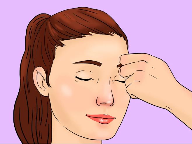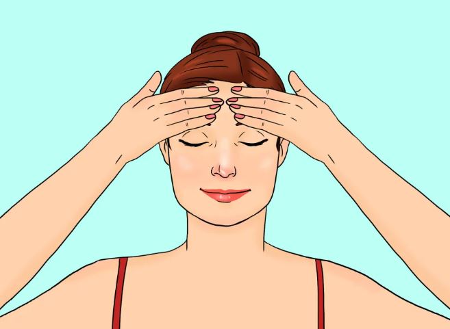 Động tác căng trán: Bạn nắm tay lại, đặt hai tay lên trán, sau đó di chuyển từ giữa trán ra hai bên và di chuyển xuống cổ cho đến khi chạm tới xương đòn.