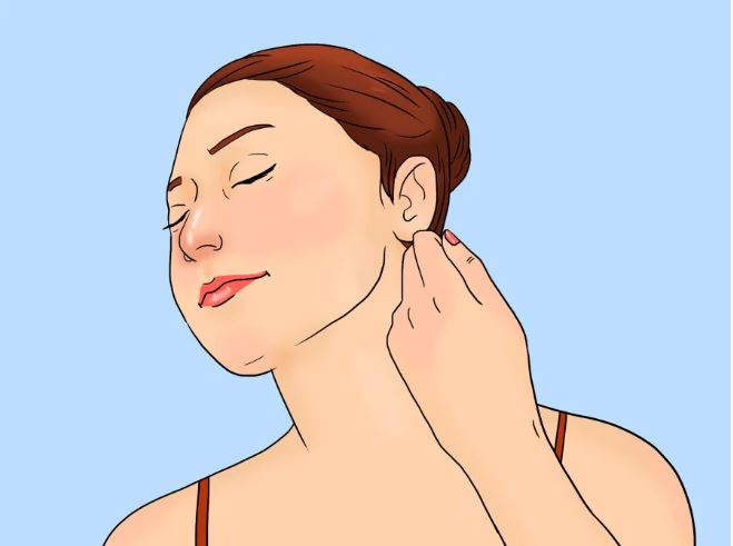 Thư giãn vùng cổ: Bạn nắm tay lại rồi dùng phần ngón trỏ và ngón giữa ấn lên da, di chuyển tay từ cằm ra phía sau. Khoảng cách khi ấn và lực kéo nên từ từ để đảm bảo các vị trí trên mặt được tác động đều. Thực hiện bài tập này từ 7 - 8 lần cho mỗi bên cơ mặt.