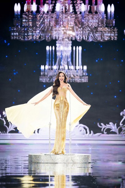 Người đẹp sải những bước chân uyển chuyển, trình diễn chuyên nghiệp cùng tà voan để tăng vẻ quyền lực nhưng vẫn nữ tính. Màn trình diễn của Lê Hoàng Phương được chia sẻ rộng rãi trên mạng xã hội và nhiều diễn đàn sắc đẹp.