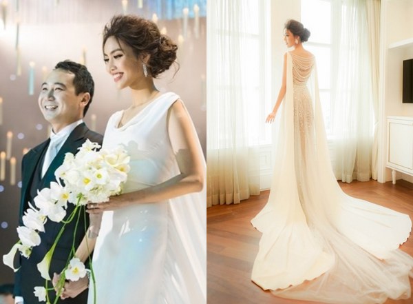 Đám cưới của Thủy Tiên – Công Vinh ngày 27/12/2014 cũng khiến người hâm mộ không khỏi xuýt xoa vì mức độ xa hoa và chi phí lên tới hàng tỷ đồng. Trong ngày đại hỷ, cô dâu diện đến 3 váy cưới, trong đó có bộ đầm dáng trumpet có giá 500 triệu đồng. Chiếc váy được NTK Đỗ Long làm từ chất liệu nhập ngoại như ren Italy, voan cao cấp và hạt đá Swarovski.