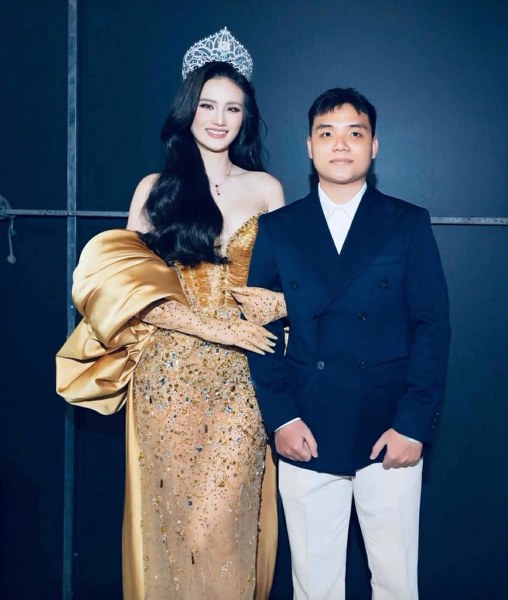Tại đêm chung kết Miss World Vietnam 2025, Anh Kiệt xuất hiện, ôm bó hoa to dành tặng cho bạn gái. Không né tránh hay giữ khoảng cách, cả hai thoải mái trò chuyện và có những cử chỉ thân mật ngay giữa không gian sự kiện đông người.