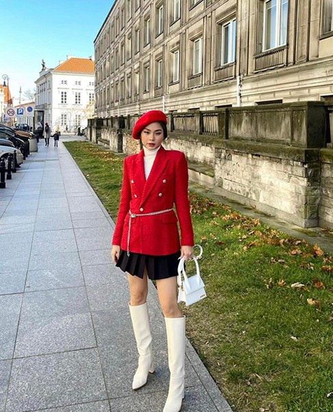Á hậu Diễm Trang phối đồ street style giống phong cách \'Người tình mùa đông\' của ca sĩ Như Quỳnh.
