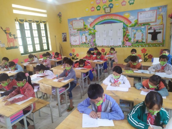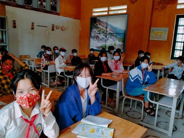 Niềm vui của các bạn học sinh khi đã có khẩu trang vải dùng nhiều lần