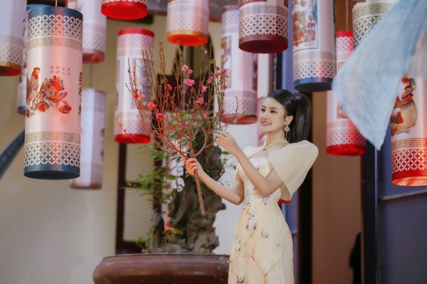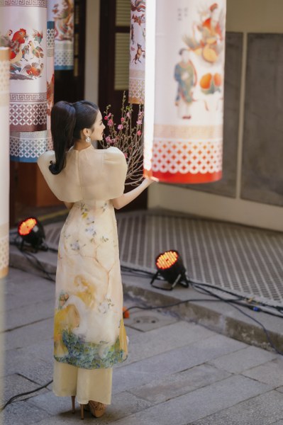 Tết Việt cổ truyền rộn ràng qua những tà áo dài dạo phố của Á hậu Hương Ly.