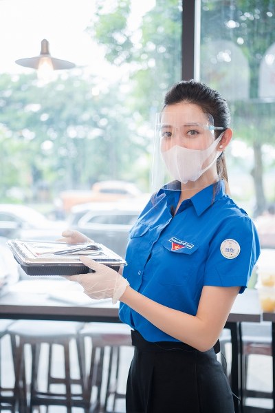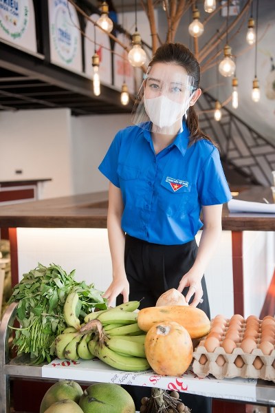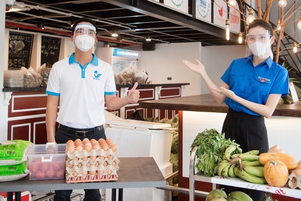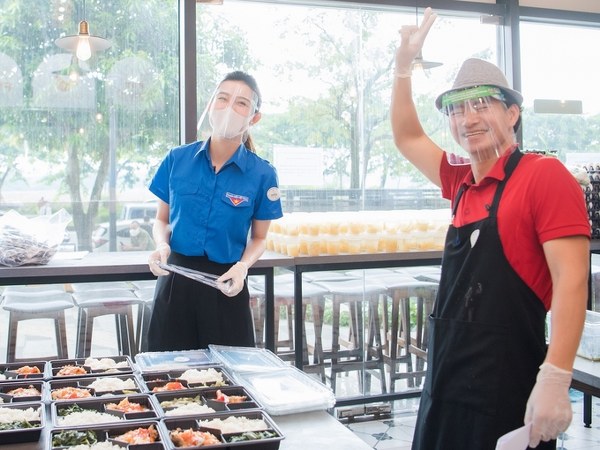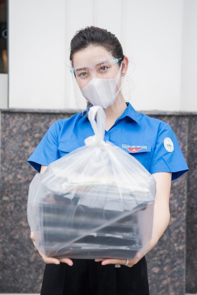 Á hậu Huyền My cùng các tình nguyện viên chuẩn bị những suất ăn chất lượng trong chương trình \'Triệu bữa cơm - Hà Nội nghĩa tình\', hôm 30/8.