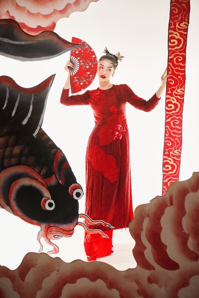 Kiều Loan lựa chọn đỏ và vàng làm màu sắc chủ đạo trong bộ ảnh Tết. Cô cho biết, đây cũng chính là gam màu mà người Việt Nam thường chọn để cầu cho một năm mới tươi vui, may mắn.
