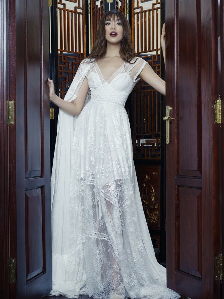 Những chiếc váy xuyên thấu mỏng manh kết hợp với những đường cắt xẻ táo bạo đã giúp Á hậu Hoàn vũ khoe trọn được số đo 3 vòng 81-63-87.