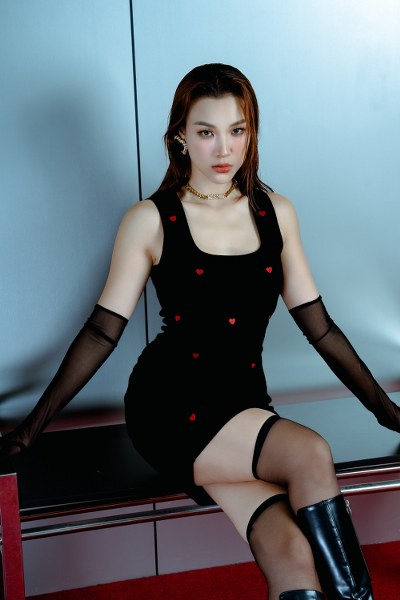 Bộ ảnh là câu chuyện được kể qua ba concept khác biệt: thanh lịch với váy cổ vuông kết hợp sơ mi trắng tinh tế, ngọt ngào cùng váy hai dây họa tiết trái tim trẻ trung và quyến rũ trong thiết kế váy da chân phồng độc đáo.
