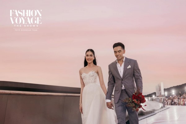 Người đẹp diện đầm cưới của nhà thiết kế Phương Linh khi được bạn trai cầu hôn giữa sự kiện thời trang ở Phú Quốc.