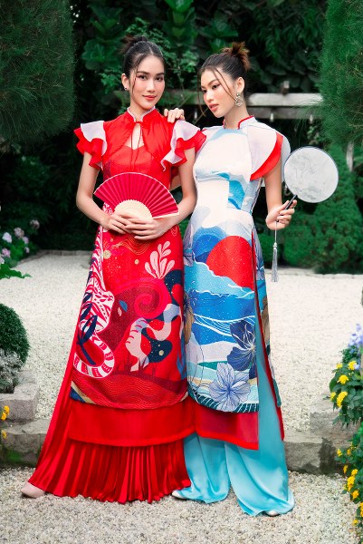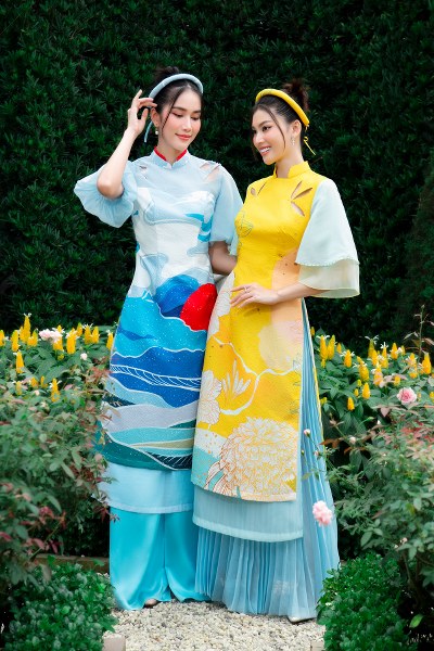 Á hậu Phương Anh, Ngọc Thảo khoe dáng trong các mẫu áo dài cách tân dành cho Xuân 2022.