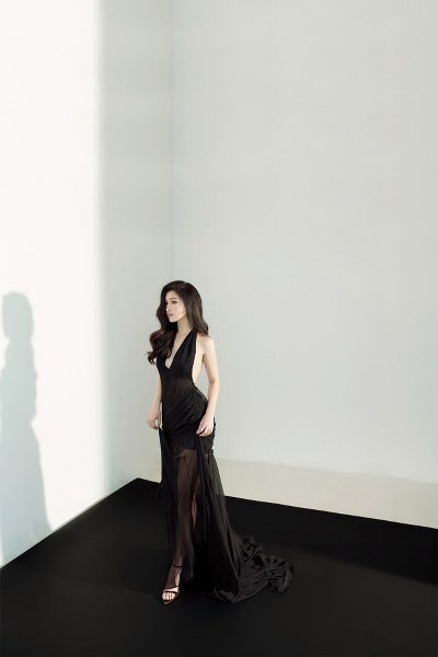 Cô khoe thần thái thời thượng, từng chuyển động pose dáng chuyên nghiệp hòa hợp với từng bộ trang phục, quyến rũ của xuyên thấu, nhẹ nhàng của những đường xếp nếp thành tầng váy, đính kết hoàn hảo theo ngôn ngữ cơ thể của nàng hậu.