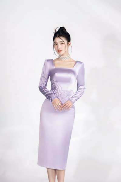 NTK Đỗ Long chọn họa tiết con nước lượn sóng làm điểm nhấn cho bộ trang phục. Các thiết kế khéo léo, khoe trọn vóc dáng, đường cong cơ thể cùng chiếc eo thon của Phương Nhi.