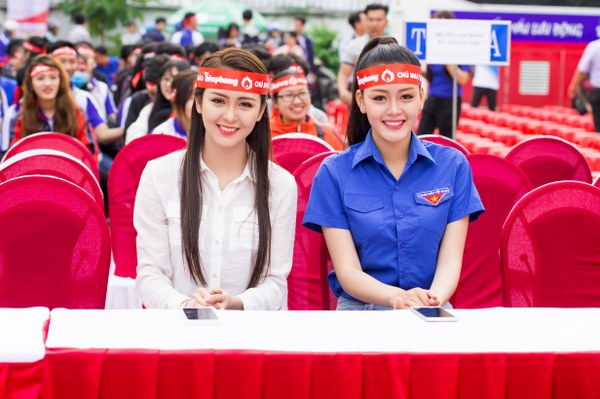 Trong dịp này, Á hậu Đặng Thanh Ngân và Hoa khôi Nam Bộ – Hải Yến đã cùng có mặt để cổ vũ và làm tăng tinh thần cho những tình nguyện viên trong ngày hội.
