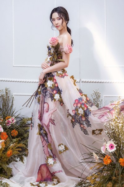 Người đẹp khoe nhan sắc khi diện trang phục có chất liệu bay bổng, họa tiết cầu kỳ.