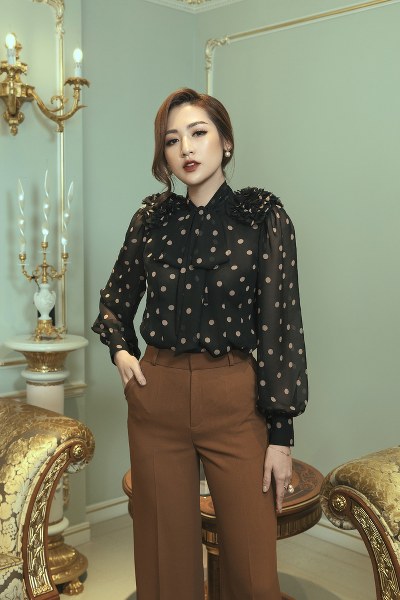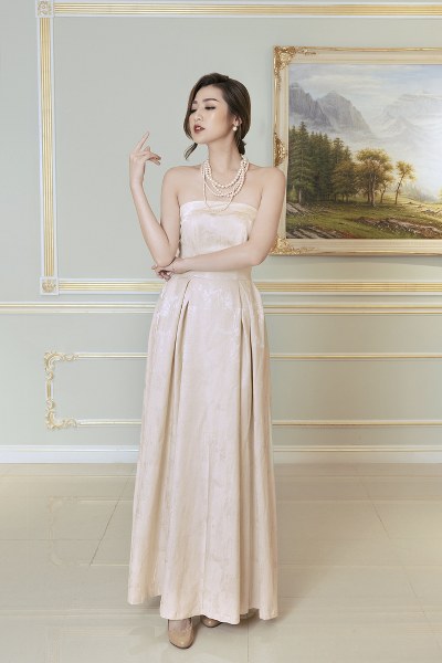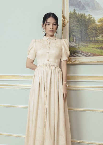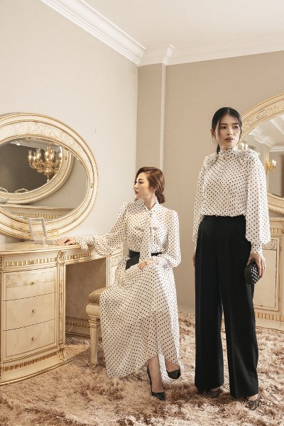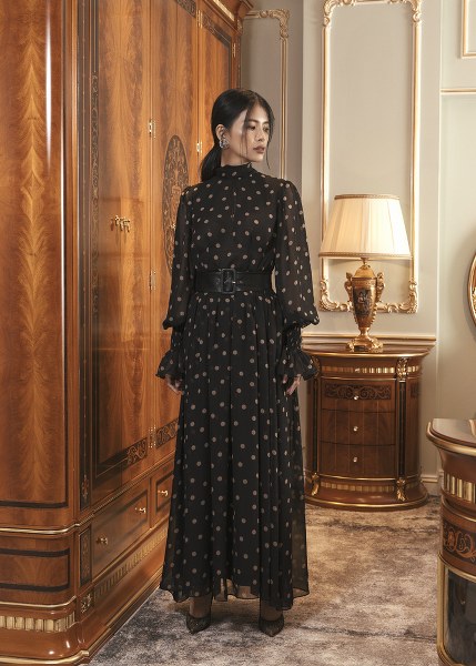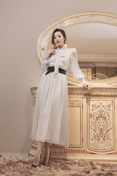 Vẻ đẹp thanh lịch và nữ tính của Á hậu Tú Anh là mảnh ghép hoàn hảo cho bức tranh thời trang thập niên 1950 mà bộ sưu tập muốn truyền tải.