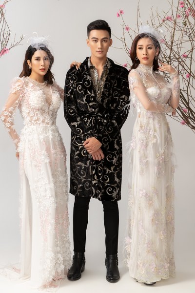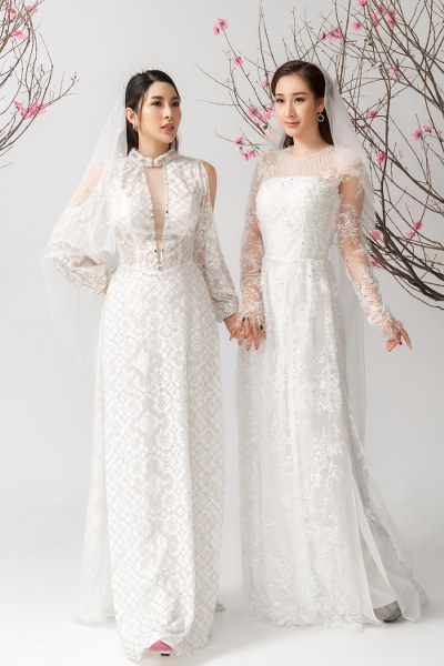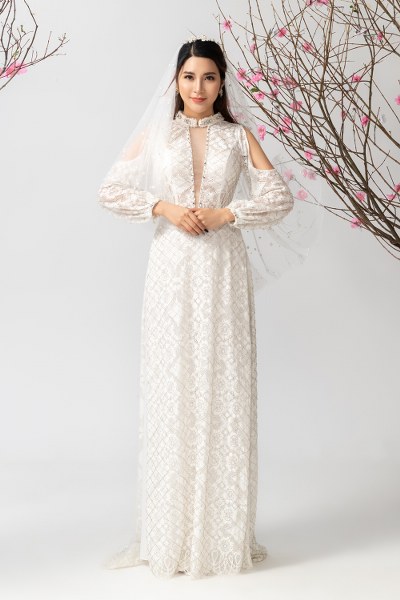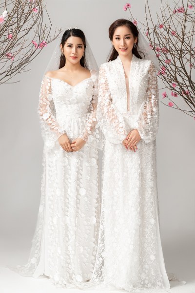 Đây là những kiểu dáng áo dài cách tân được xây dựng trên các chất liệu voan lụa, voan lưới mỏng đi kèm hoạ tiết cánh hoa đính nổi.