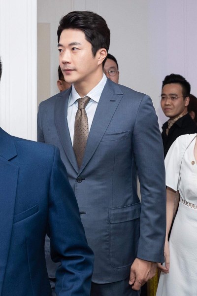 Trong lần xuất hiện này, Kwon Sang Woo lựa chọn mặc trang phục vest lịch lãm