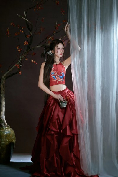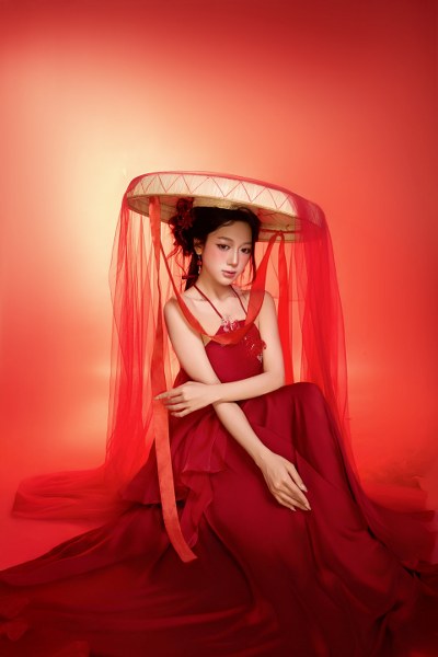 Khi chuyển sang yếm đỏ - gam màu thường gắn với không khí Tết và quan niệm may mắn trong văn hóa Á Đông - người đẹp thể hiện phong thái chững chạc, rõ nét hơn về biểu cảm và tạo hình.