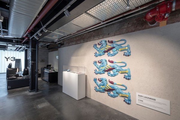 Hình ảnh biểu tượng của 3 chú sư tử (hay còn gọi là Tam sư)in trên áo của đội tuyển Anh được đặt trong cửa hàng adidas Originals tại London, Anh