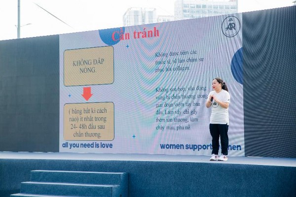 Đặc biệt, trong chương trình còn có workshop của Bác sĩ Lê Nguyễn Tiểu Thảo với chủ đề “Hiểu về chấn thương” đã giúp các runner có thêm những kiến thức phong phú về cách phòng tránh, chữa trị và phục hồi chấn thương trong chạy bộ. Đối với nữ giới, chấn thương là một nỗi sợ và rào cản khá lớn khi tập luyện thể thao, vì thế workshop này rất hữu ích cho các chị em. Với kinh nghiệm 7 năm làm việc trong lĩnh vực điều trị chấn thương thể thao chuyên nghiệp, phụ trách mảng y tế cho các đội tuyển thể thao quốc gia… Bác sĩ Tiểu Thảo đã giải thích tường tận và trả lời tất cả khúc mắc của các runner về chấn thương khi tập thể thao nói chung, và chạy bộ nói riêng.