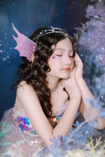 Trong một bộ ảnh, Ailani hóa thân thành nàng tiên cá, gây xao xuyến bởi vẻ đẹp ngọt ngào, trong trẻo. Theo Phương Vy, so với bạn bè cùng lớp, con gái của cô có chiều cao vượt trội.