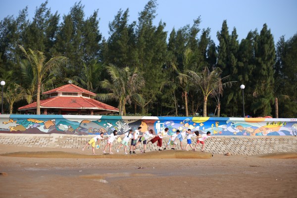 Thông điệp mãnh mẽ về giữ gìn môi trường biển được truyền tải ấn tượng qua bức tranh dài kỷ lục trên kè bờ biển
