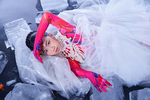 Cô bé hăng hái làm việc liên tục trong hơn 1 giờ để kịp hoàn thành bộ ảnh trước khi nước đá tan hết và xem đây là một thử thách thú vị để vượt qua khi chụp ảnh thời trang.