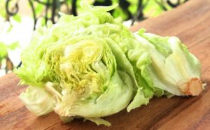 Xà lách iceberg là một trong những loại rau cung cấp nước rất tốt cho cơ thể nhờ có tới 96% thành phần là nước. Dù không phải là loại rau giàu dinh dưỡng nhưng bạn vẫn nên đưa xà lách iceberg vào thực đơn bởi chúng nhiều nước và giàu chất xơ. Rau diếp iceberg có thể ăn kèm với gà, salad và burger.
