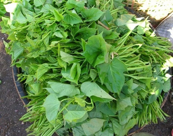 Rau khoai lang chứa nhiều nước giúp tăng cường trao đổi chất trong cơ thể và thúc đẩy bài tiết chất thải.
