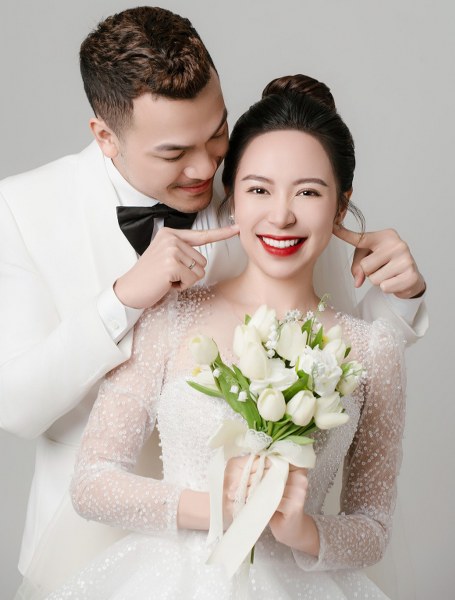 Cặp đôi tìm hiểu hơn 1 năm trước khi quyết định kết hôn. Trước đó, Kim Oanh vẫn giữ kín dung mạo và thông tin ông xã.