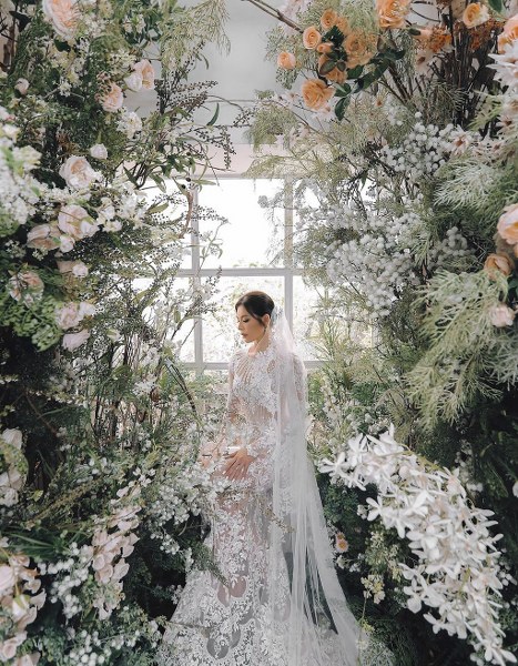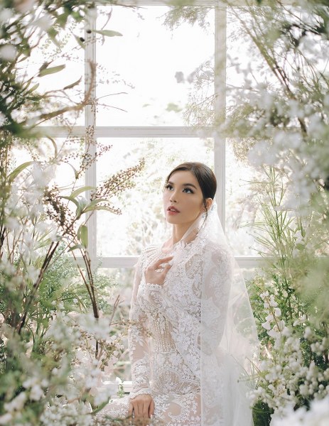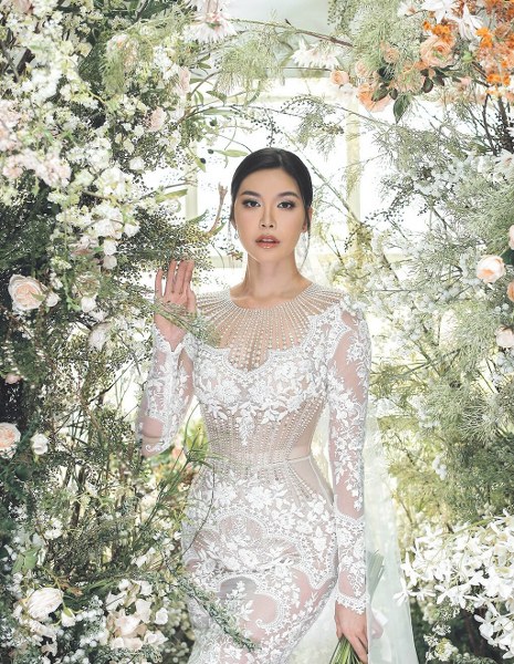 Siêu mẫu Minh Tú xinh đẹp, khoe đường cong khi diện váy cưới ren xuyên thấu do nhà thiết kế Chung Thanh Phong thực hiện.