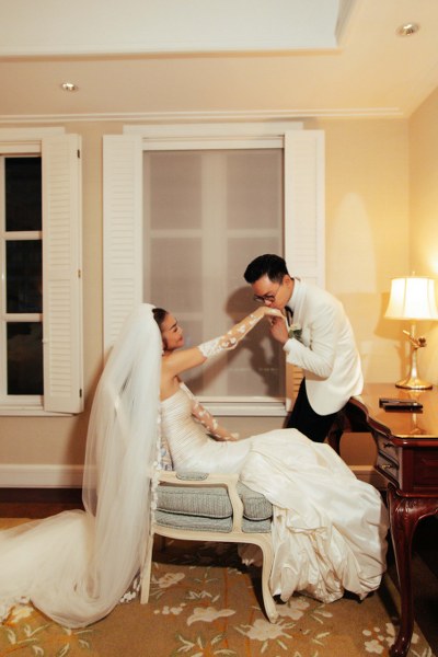 Hôn lễ được tổ chức riêng tư, kín đáo trước sự chứng kiến của gia đình, bạn bè, đồng nghiệp thân thiết.