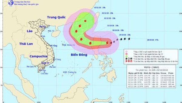Dự báo trong 24h tới, bão di chuyển theo hướng Tây, mỗi giờ đi được 15-20km. Đến 19h tối nay, vị trí tâm bão ở khoảng 16,7 độ Vĩ Bắc; 119,4 độ Kinh Đông, cách quần đảo Hoàng Sa khoảng 780km về phía Đông.