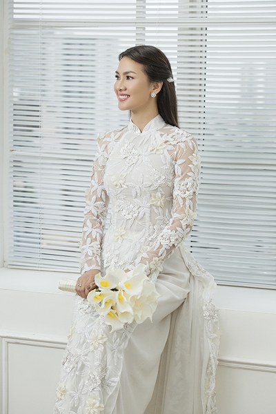 Anh Thư chinh phục dễ dàng các áo dài ren hoạ tiết phom dáng ôm và tiết lộ về cuộc sống hiện tại sau sóng gió hôn nhân.