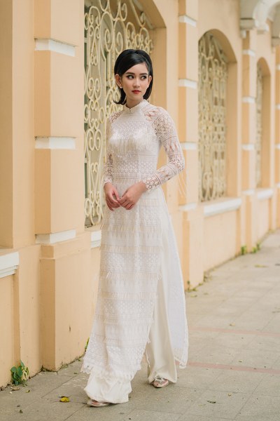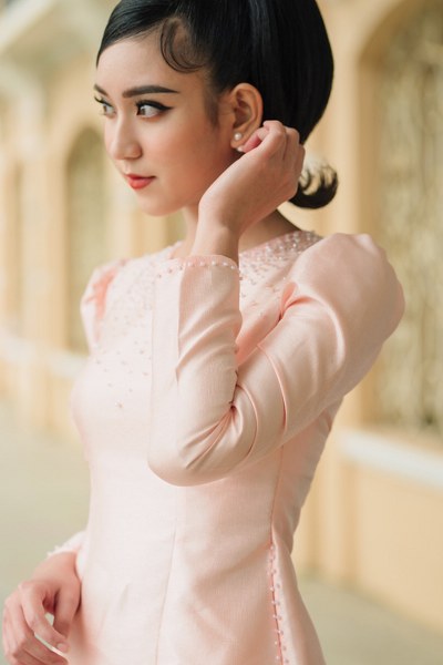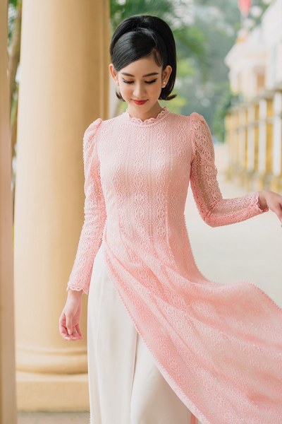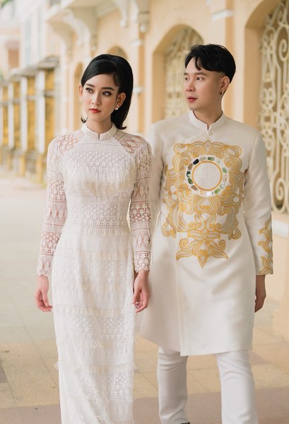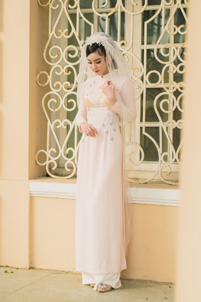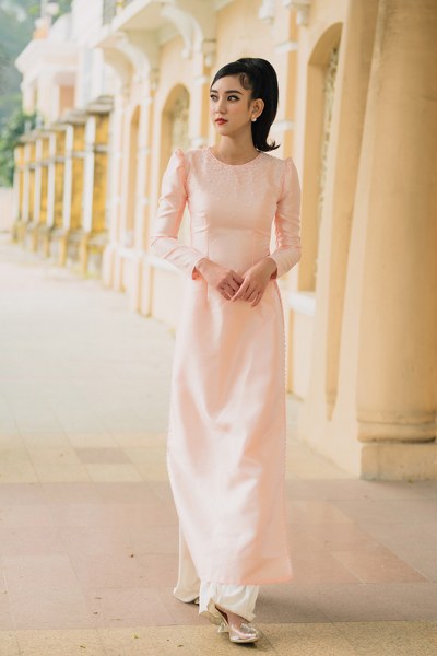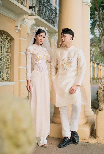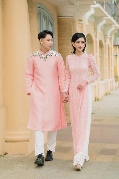 Các cặp áo dài mang sắc màu tươi trẻ, pastel như trắng, hồng, vàng nhạt mang nét thanh lịch, tinh khôi.