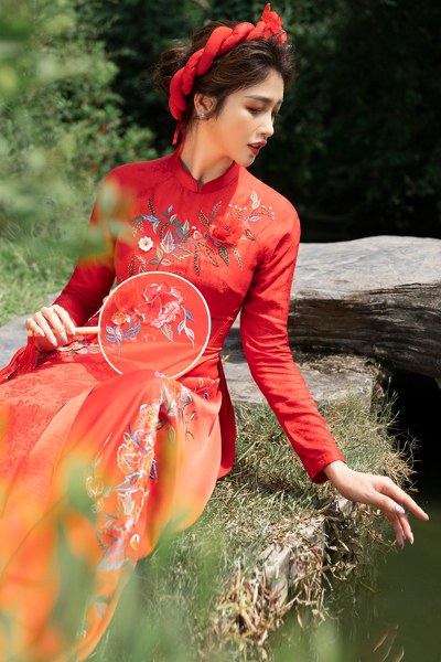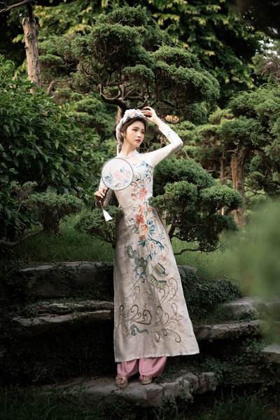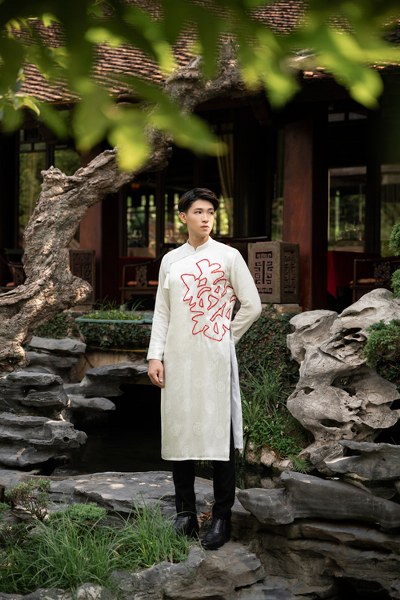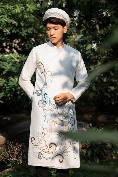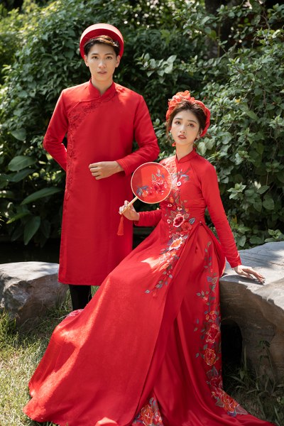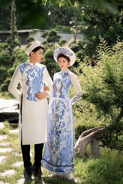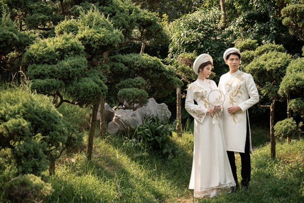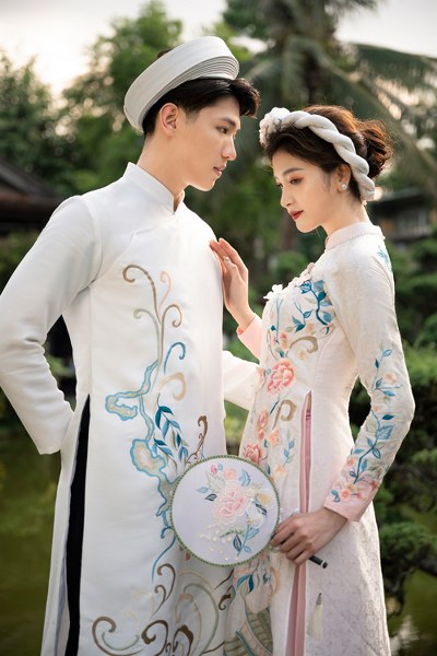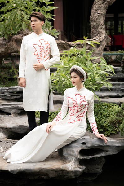 Sự hài hòa, ăn ý giữa họa tiết trên áo dài của cô dâu - chú rể chính là một thông điệp ngầm khẳng định tình yêu và mức độ gắn kết giữa hai người.
