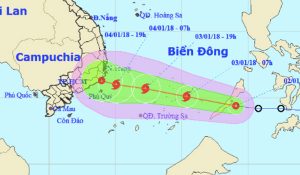 Đến 7h sáng mai, vị trí tâm bão ở vào khoảng 10,1 độ Vĩ Bắc; 115,4 độ Kinh Đông, cách đảo Song Tử Tây (thuộc quần đảo Trường Sa) khoảng 180km về phía Đông Nam. Sức gió mạnh nhất ở vùng gần tâm bão mạnh cấp 8 (60-75km/giờ), giật cấp 10.