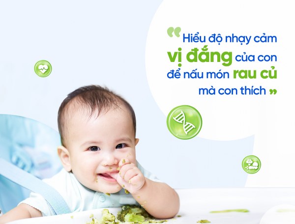 Mỗi bé có mức độ nhạy cảm với vị đắng khác nhau, được quy định bởi yếu tố gen. Để xác định mức độ cảm nhận vị đắng của bé nhà mình, cha mẹ có thể thực hiện giải mã gen để hiểu khẩu vị của con, cũng như nhu cầu chất dinh dưỡng. Từ đó, gia đình có thể lên một thực đơn ăn dặm dành riêng cho con, giúp quá trình ăn dặm vui vẻ và dễ dàng hơn. Ngoài ra, để con làm quen với ăn rau và hạn chế vị đắng, khi chế biến, cha mẹ có thể lựa chọn các loại rau ít đắng, ngọt tự nhiên như bí đỏ, bắp cải, cà rốt, rau mồng tơi. Khi nấu, cha mẹ có thể kết hợp thêm tôm, phô mai (nếu bé không bị dị ứng sản phẩm từ sữa bò) vào đồ ăn để tăng khẩu vị cho bé.