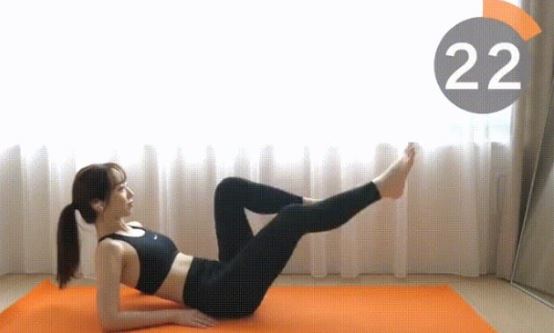 Động tác này có thể giải quyết tình trạng đau mỏi, cũng rất hữu ích cho việc giảm béo vùng bụng dưới. Dùng khuỷu tay chống đỡ cơ thể, gập đầu gối và nhấc chân lên, sau đó hạ chân xuống nhưng không chạm thảm, rồi nâng lên, thực hiện đều đặn trong 30 giây.