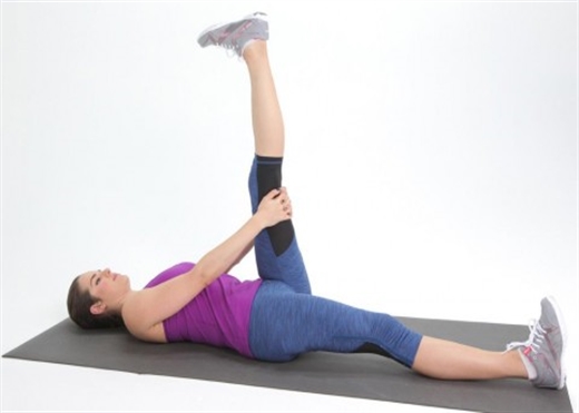 – Nằm thẳng lưng lên sàn nhà, hai chân duỗi thẳng.