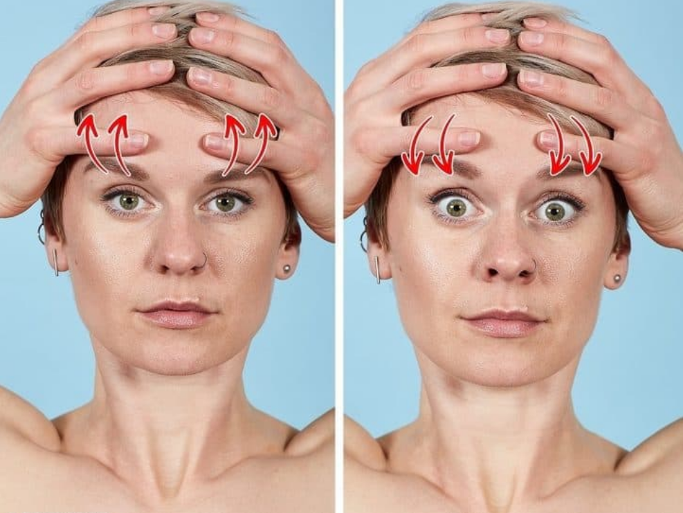 Để tránh tạo nếp nhăn ở mắt khi thực hiện động tác này, hãy đặt ngón tay lên thái dương, sau đó ấn vào các cơ và hướng lên trên.
