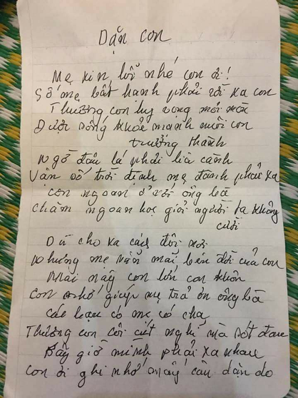 Biết trước cái chết của mình, một người mẹ đơn thân đã viết một bài thơ để lại cho con trai trước khi ra đi.