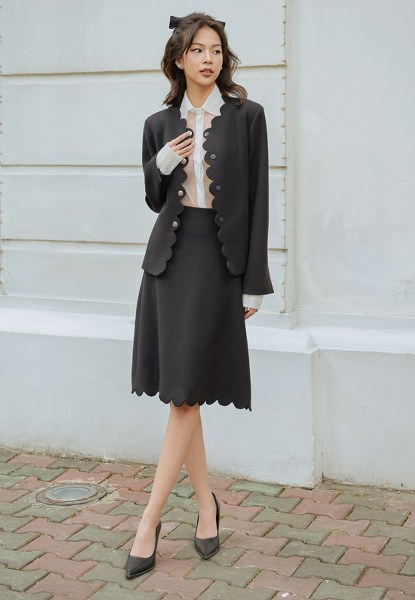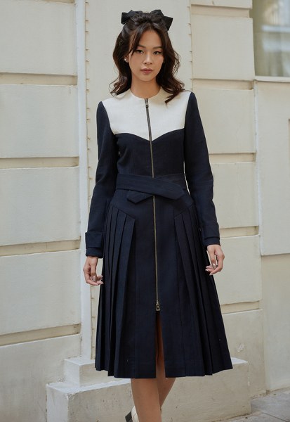 Váy xếp ly tay dài may bằng chất liệu dày dặn phù hợp với thời tiết se lạnh những ngày cuối năm.