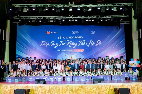 Vào ngày 28/3 vừa qua, sự kiện trao học bổng “Thắp sáng Tài năng Thế hệ số” cho 100 sinh viên có hoàn cảnh khó khăn và thành tích học tập nổi bật đã diễn ra tại Đại học Quốc gia Hà Nội. Chương trình trao học bổng được tổ chức bởi nền tảng Lazada Việt Nam phối hợp cùng Đại học Quốc gia Hà Nội nhằm hỗ trợ cho các sinh viên có chuyên ngành hoặc lĩnh vực học liên quan đến Thương mại điện tử.