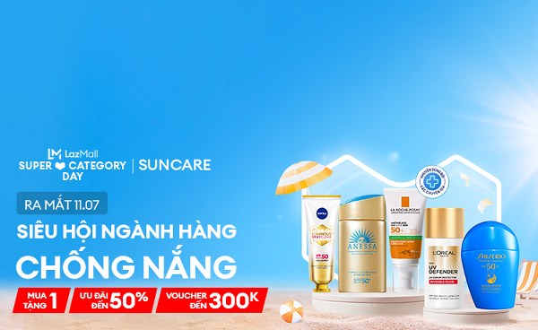 Lazada lần đầu tiên mang đến ngày "Siêu hội Ngành hàng LazMall", tập trung vào các sản phẩm chống nắng, cùng với các gợi ý chăm sóc da dành cho cộng đồng yêu thích làm đẹp trên khắp Đông Nam Á. Tại Việt Nam, "Siêu hội ngành hàng LazMall" sẽ diễn ra vào ngày 11/7, quy tụ hơn 50 thương hiệu chống nắng hàng đầu bao gồm La Roche Posay, Anessa, L'Oreal Paris, Shiseido,Nivea… Đây là dịp người dùng có thể thỏa sức khám phá và đắm chìm trong hàng nghìn sản phẩm chống nắng với ưu đãi 50% độc quyền và voucher giảm giá đến 300.000 đồng.