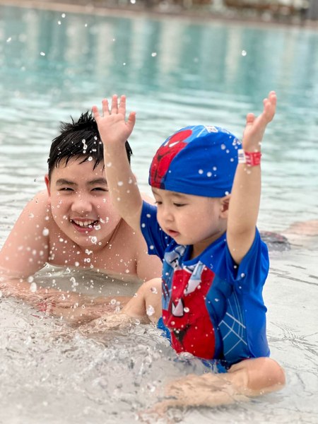 Không gian ở đây khiến các cậu con trai của Bằng Kiều vô cùng thích thú, tận hưởng những tiện ích dịch vụ.